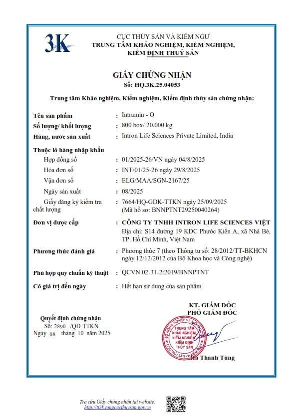 SẢN PHẨM INTRAMIN-O® ĐÃ ĐƯỢC CHỨNG NHẬN ĐỦ TIÊU CHUẨN LƯU HÀNH